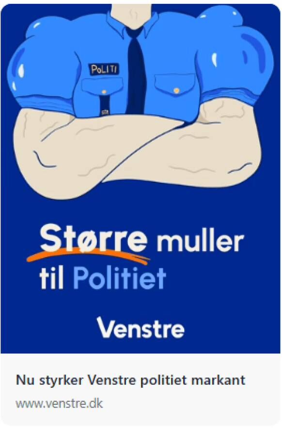 De næste fem år tilfører vi politiet knap seks milliarder kroner, udvider politistyrken, styrker politiuddannelsen og sætter hårdt ind mod økonomisk kriminalitet. For danskernes tryghed og sikkerhed er Venstres førsteprioritet 💙